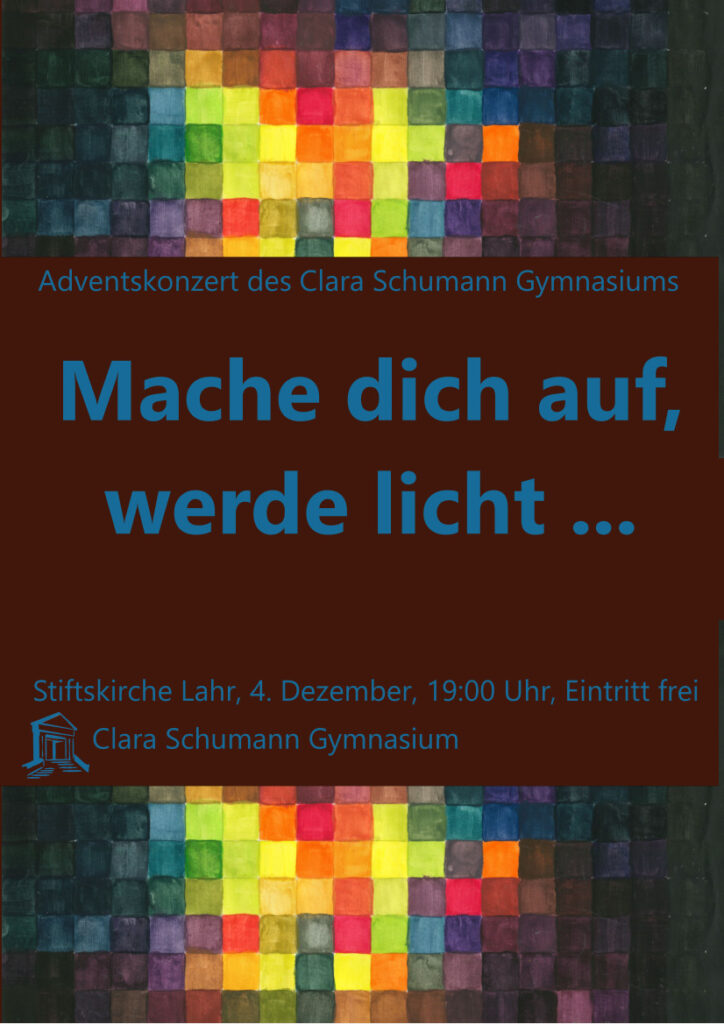 Unter dem Motto „Mache dich auf, werde licht“ präsentieren verschiedene Ensembles und Solist*innen des Clara-Schumann-Gymnasiums am 4.12.25 um 19 Uhr in der Stiftskirche Lahr ein etwa 80-minütiges adventliches Musikprogramm. Zu hören sind die beiden Chöre und die beiden Orchester der Schule, zudem erklingen Beiträge einer Musikprofilklasse und des Vokalensembles sowie solistische Werke für Querflöte. Die Lichttechnik-AG wird das Konzert stimmungsvoll beleuchten. Das Programm bietet sowohl einen dramaturgischen Bogen von der Dunkelheit zum Licht als auch eine musikalische Zeitreise vom gregorianischen Choral des Mittelalters bis hin zum Jahr 2025. Tatsächlich werden gleich vier Stücke in diesem Konzert ihre Uraufführungen erleben: Ein „Kyrie-Reggae“ der Musikklasse 11b und die Chorwerke „Licht“ von Jonathan Vogt (Kl. 12) und „O oriens“ von Musiklehrer Christian Wenzel. Den Abschluss des Abends bildet dann die titelgebende Komposition „Mache dich auf, werde licht“ für Solo, Chor und Sinfonieorchester im Stil von Mendelssohn, die der 20jährige Jonas Wahler (Abitur 2025) den CSG-Ensembles gewidmet hat. Der Eintritt ist frei; im Anschluss an das Konzert bewirtet die Jahrgangsstufe 2 vor der Kirche mit Punsch und Gebäck.