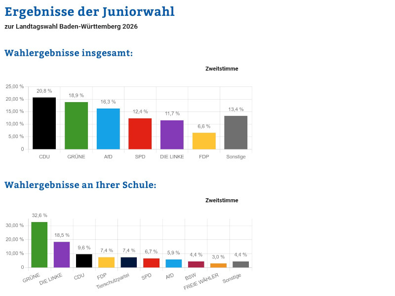 Wie läuft eine Wahl eigentlich ab und welche Themen sind jungen Wähler*innen besonders wichtig? Genau diese Fragen wurden in den Wochen vor der Landtagswahl geklärt. Am Donnerstag, den 05.03.2026, fand die Juniorwahl zur Landtagswahl Baden-Württemberg 2026 statt. Ziel dieses Projekts, das regelmäßig bundesweit im Rahmen von Landtags-, Bundestags- und Europawahlen realisiert wird, ist es, Jugendlichen den Ablauf demokratischer Wahlen realitätsnah näherzubringen. Die Aufgabe der Wahlhelfer*innen übernahmen Schüler*innen der Klasse 10a selbst. Und so konnten die Klassen 9a-JS1 am 05.03. ihre Stimme abgeben. Auf Wahlscheinen, die bei der richtigen Landtagswahl genauso aussahen. Und mit der bitteren Erfahrung, dass man ohne Ausweisdokument nicht wählen darf.