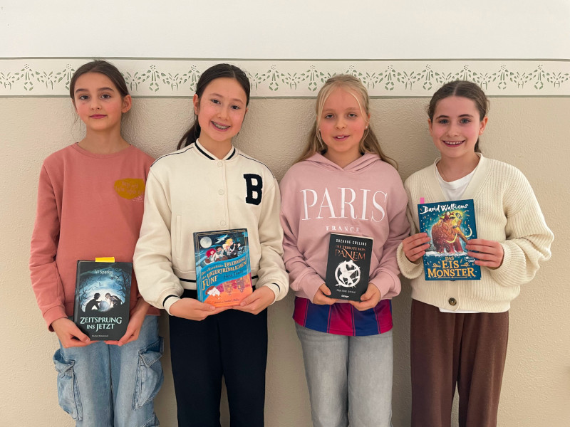 Zwischen den Herbst- und den Weihnachtsferien fanden in der Klasse 6a viele Vorlesestunden statt, in denen die vier Klassensiegerinnen von ihren MitschülerInnen ausgekoren wurden. Diese vier Finalistinnen traten dann vor einer Fachjury, die aus den beiden Deutschlehrerinnen Sarah Isele und Teresa Göttelmann, sowie der Siegerin des letztjährigen Vorlesewettbewerbs Bibiana Bolz in den Lesewettstreit. Bewaffnet mit ihrem Lieblingsbuch und einer selbstgewählten Textstelle ging es los. Laetitia Siefert entschied sich für den Roman Die elternlosen Erlebnisse der unzertrennlichen Fünf von Hana Tooke und Anais Brinken las aus dem Roman Zeitsprung ins Jetzt von Ali Sparkes. Mit einer besonders spannenden Textstelle aus dem Roman Die Tribute von Panem (Suzanne Collins) gewann Josefine Rennkamp die Aufmerksamkeit ihrer ZuhörerInnen. Aus dem Roman Das Eismonster von David Walliams las Eliza Kircher. Alle vier Schülerinnen überzeugten mit ihrer sehr guten Lesetechnik und ihrer individuellen Art der Interpretation ihrer Textstelle, sodass es der Jury schwer fiel eine Siegerin zu küren. Der Wettbewerb konnte demnach erst in der zweiten Runde entschieden werden.